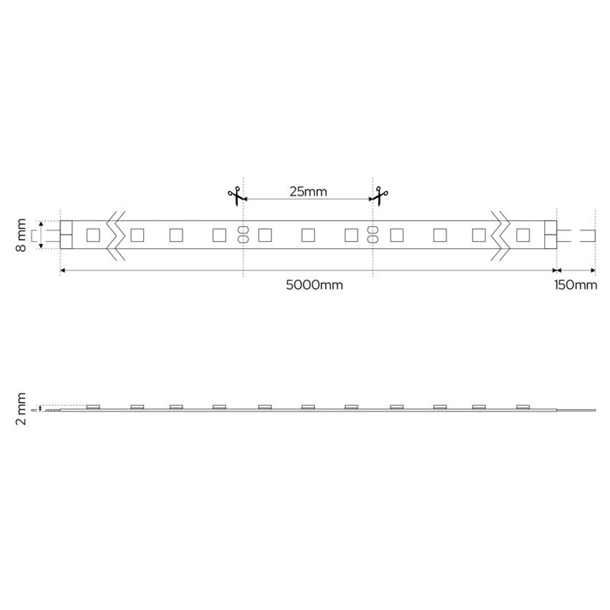 | Im Paket | 1 × LED-Streifen (5 m, kaltweiß, IP22) |