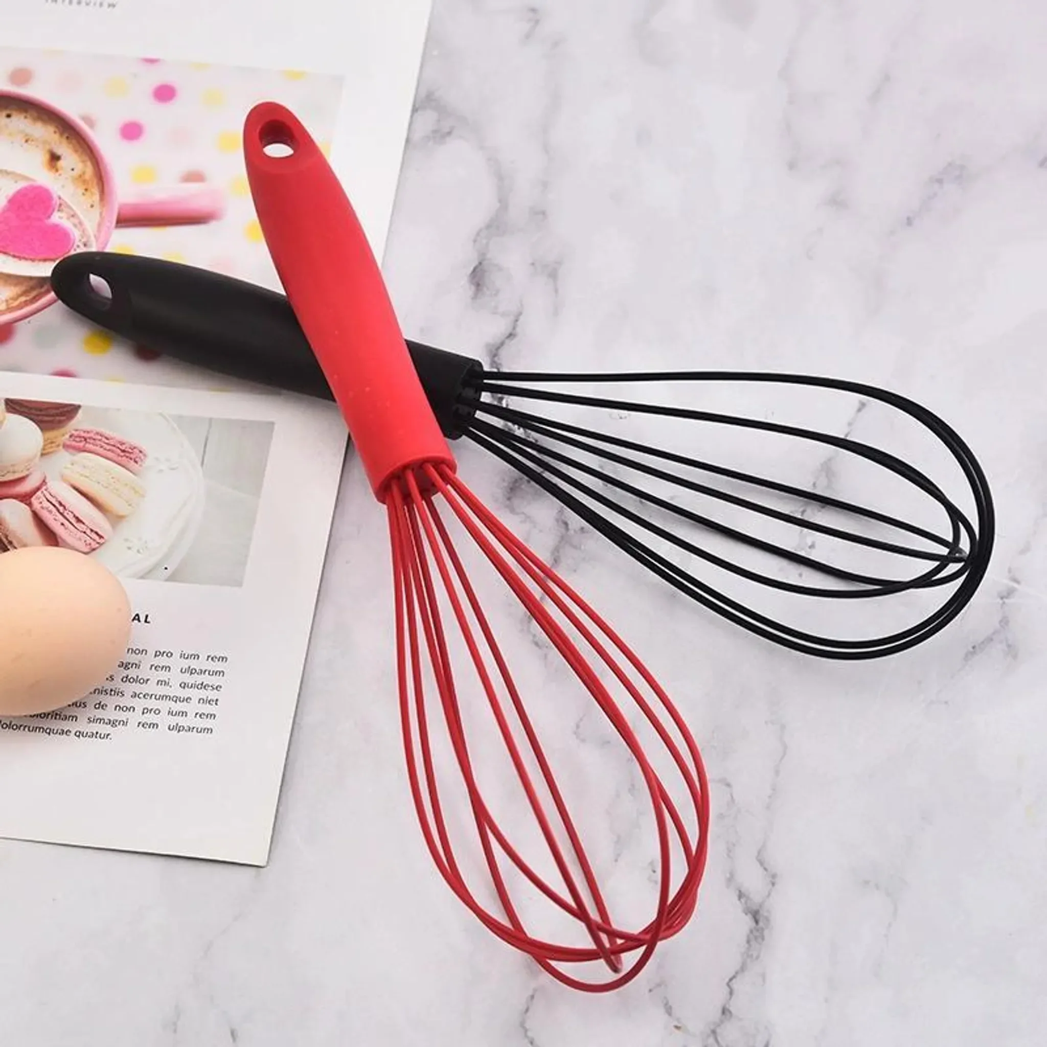 | Im Paket | 2 × Silikon-Schneebesen (Rot + Schwarz) |